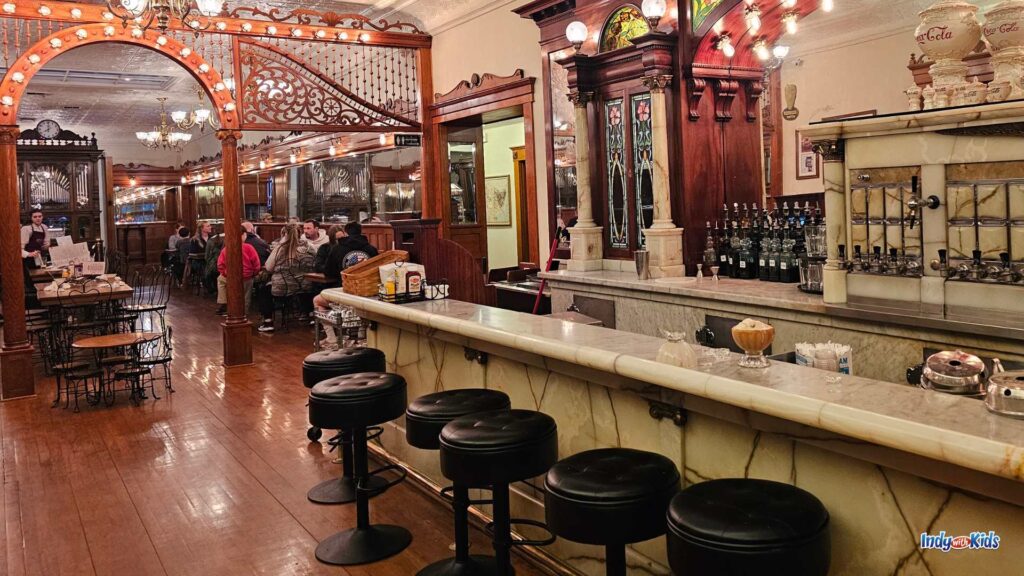 Located an hour from Indianapolis in downtown Columbus, Zaharakos has been around since 1900. Originally an ice cream parlor, today the parlor features lunch items, desserts, a museum, and a vintage toy and candy shop. Multiple private party venues are available to host a sweet baby shower. The Whitman Room can hold up to 24 guests and is a private ice cream parlor. The Museum Room is surrounded by pre-1900 soda fountains and mechanical musical instruments. This semi-private room can seat up to 40 adults.