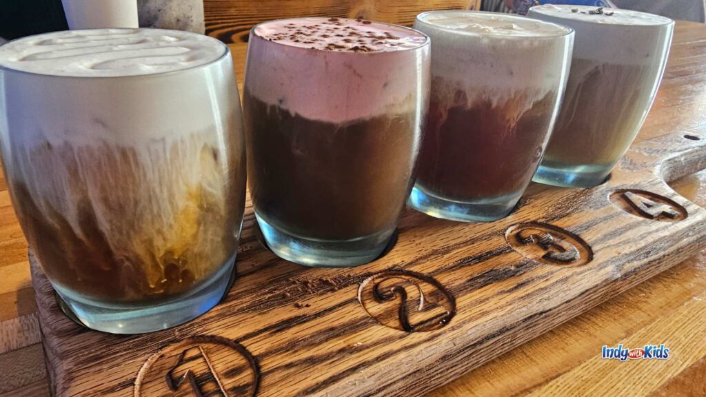 Make a stop at Best Friends Coffee & Bagels in Brownsburg while you’re out enjoying holiday activities in Hendricks County. Each month, they create a delicious cold brew flight featuring four mini specialty drinks inspired by seasonal flavors, and December’s holiday flight is sure to be extra festive. In November, families have been loving flavors like Bourbon Peach Pecan Pie, Buckeye, Salted Caramel Apple Crumble, and Peppermint Chocolate Cheesecake. It’s the perfect treat for parents while the kids enjoy a warm bagel or muffin, and a fun way to sip your way into the holiday season.