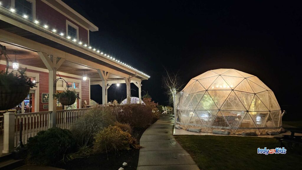 Outside the Farmhouse, the igloos are ready for both the holiday and winter seasons. These private domes offer a cozy and scenic dining experience under the evening sky. Each igloo is heated and decorated to feel warm and inviting. Families love them because they’re private, fun, and an easy way to try something different.
