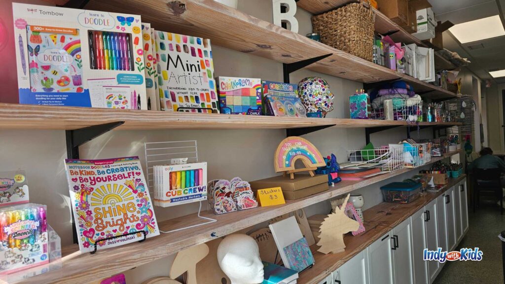 Inside the studio, families will find a charming boutique stocked with art supplies, creative toys, imagination-sparking materials, children’s books, small batch gifts, and unique items that are perfect for birthdays, holidays, or just keeping your young artist inspired. It’s a wonderful spot to pick up meaningful, open-ended play items and high-quality art materials you won’t always find in big box stores. The boutique makes every visit feel extra special and gives families a way to bring the Brightly magic home.